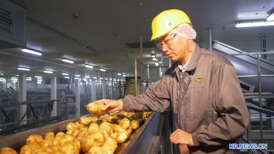 [신화망 중국 시안 4월19일] 중국의 '농업과학 도시' 산시(陜西)성 양링(楊淩)시에 위치한 냉동 감자 제품 다국적 기업 매케인의 현대화 공장. 자동화 생산라인에서 냉동 식품으로 가공된 감자는 중국 전역 소비자의 식탁에 오른다.