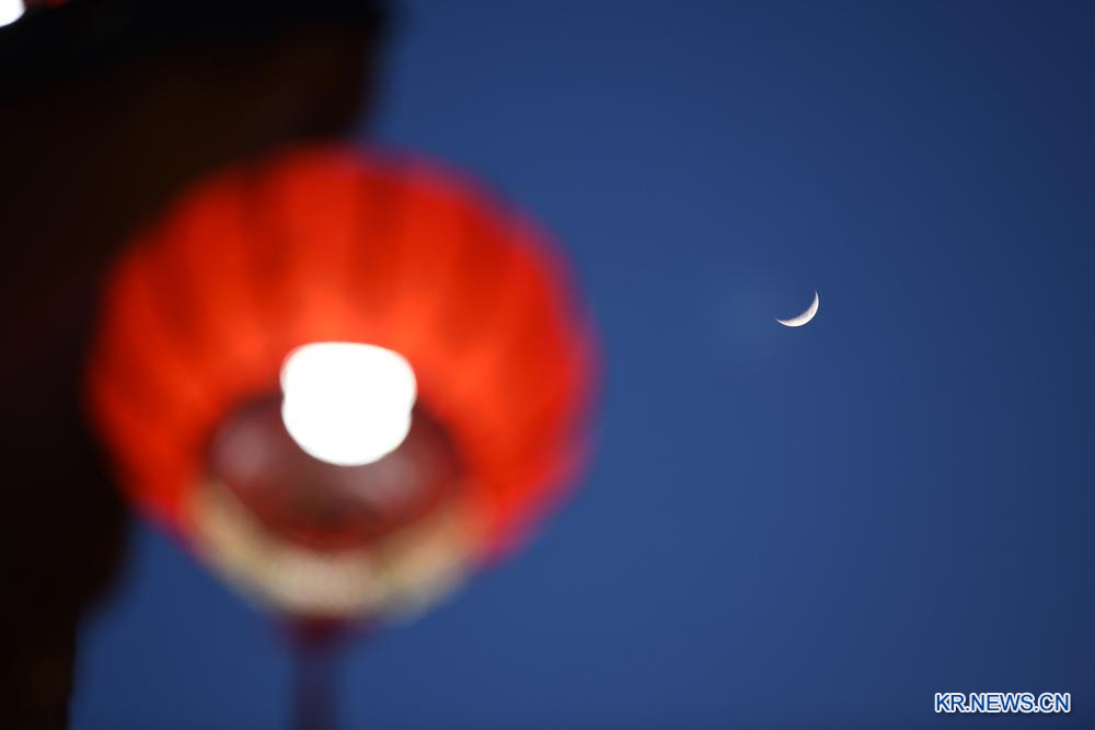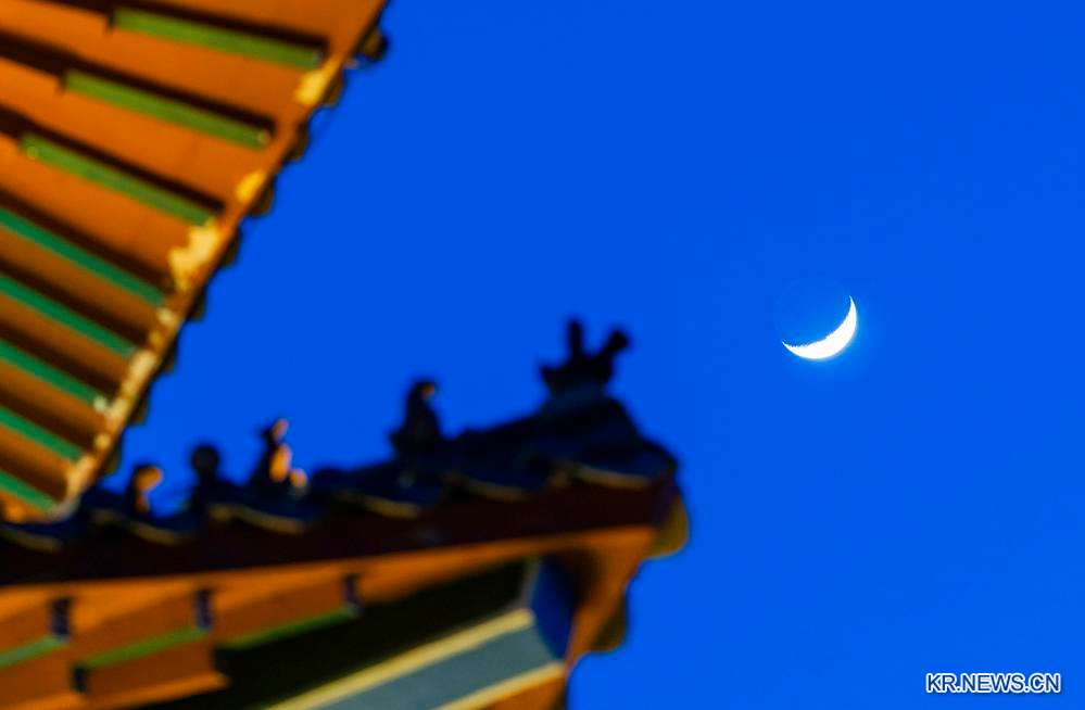 21일 헤이룽장(黑龍江)성 쑤이화(綏化)시 베이린(北林)구에서 촬영한 초승달. 2026.4.21