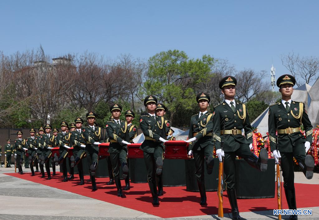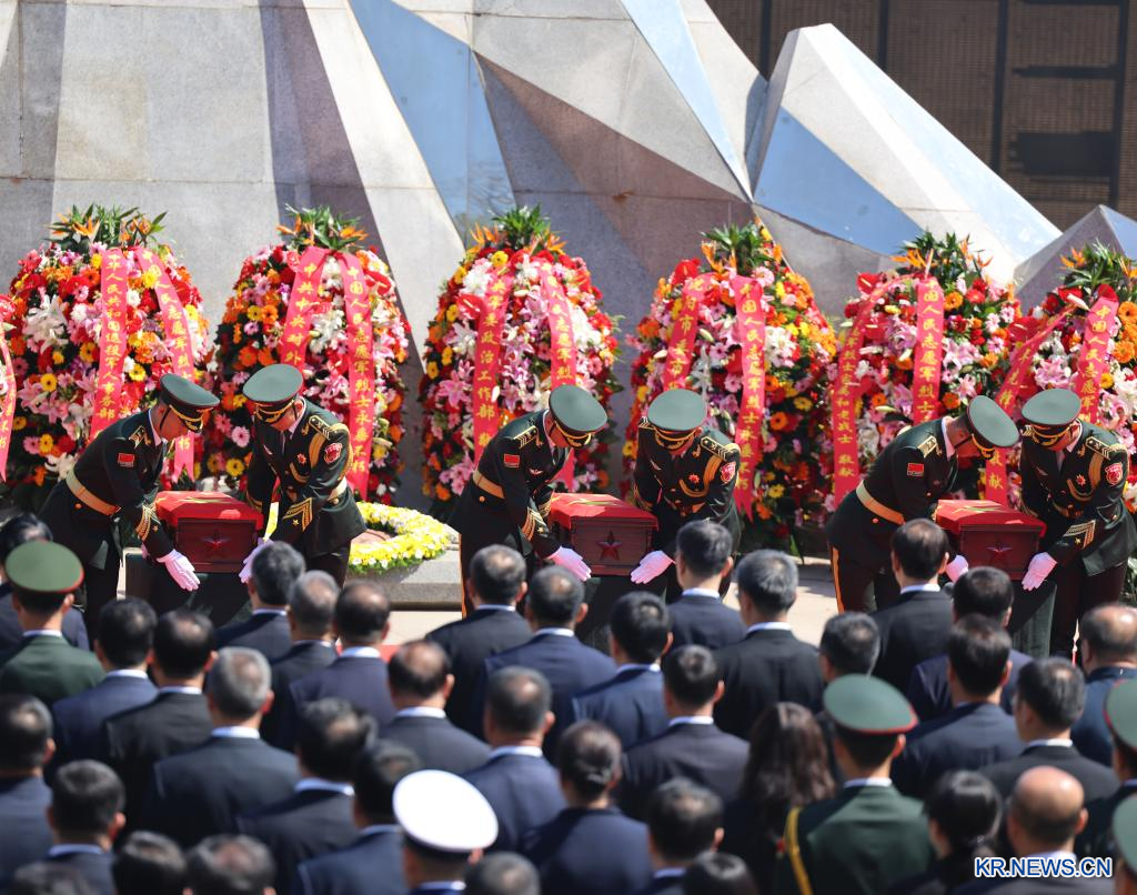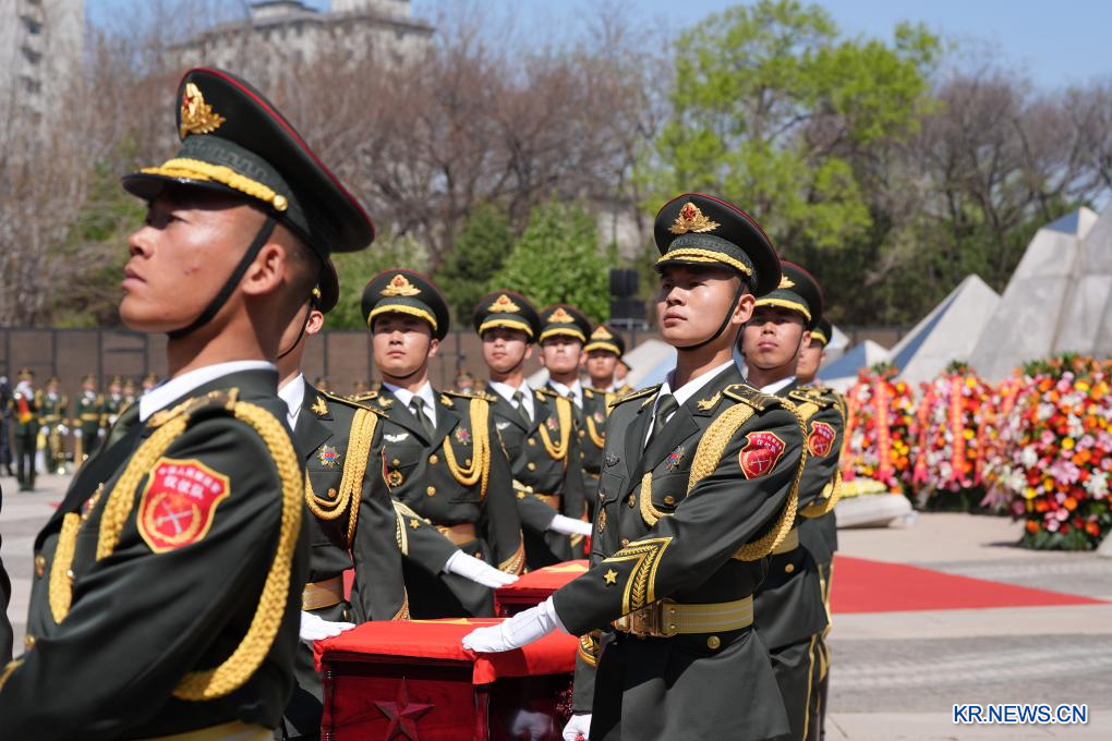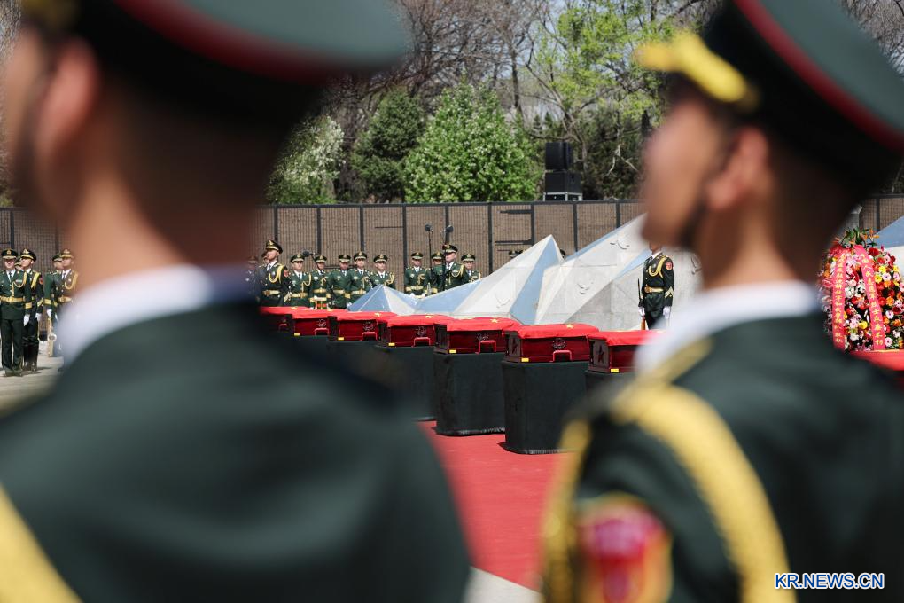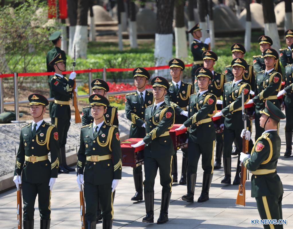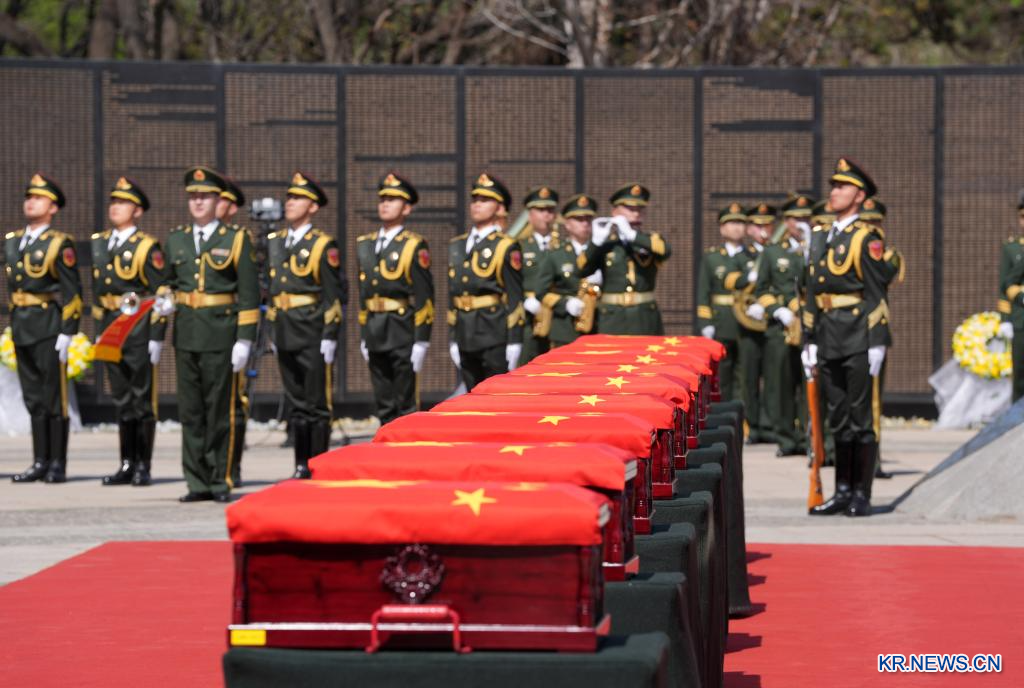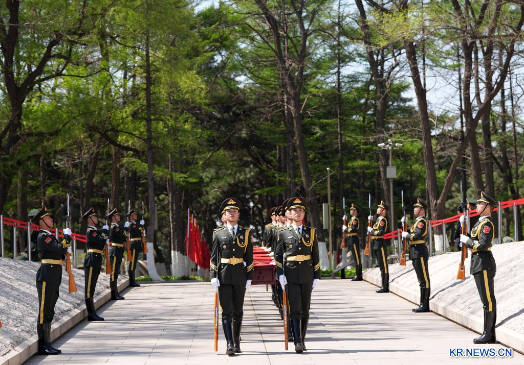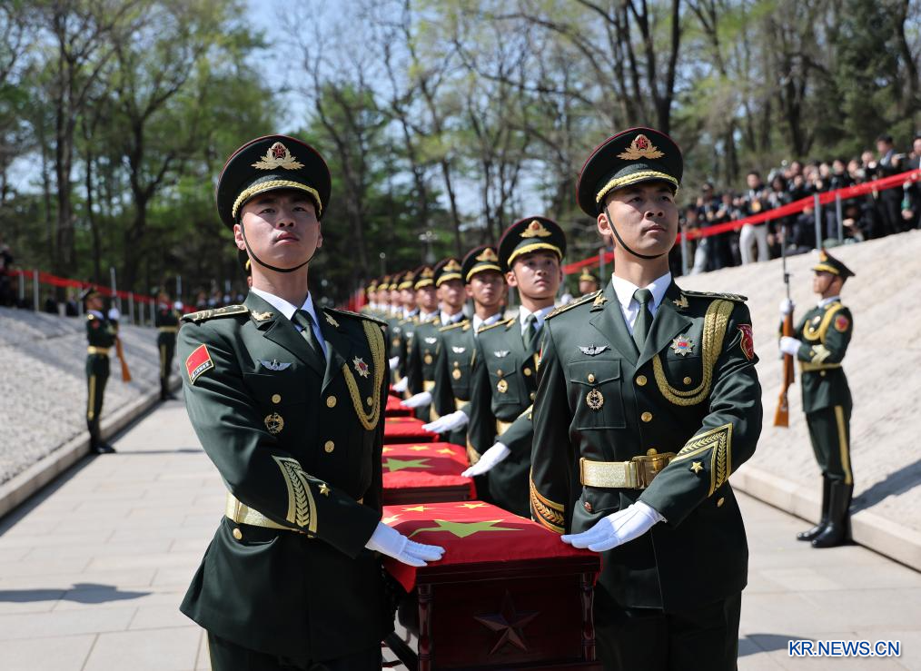 [신화망 선양 4월23일] 제13차 재한 중국인민지원군 열사 유해 안장식이 23일 랴오닝(遼寧)성 선양(瀋陽)에 위치한 항미원조열사릉원에서 열렸다. 12명의 지원군 열사 영령은 70여 년 만에 조국으로 돌아와 영면에 들었다.