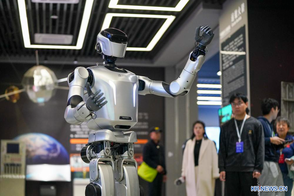 '제11회 중국 우주의 날'인 이날, 하얼빈(哈爾濱)공업대학 싸이얼(賽爾)실험실이 개발한 로봇이 하얼빈공업대학 우주관에서 관람객을 직접 이끌며 실내 전시 구역을 탐방했다. 사고 능력을 갖춘 해당 로봇은 길 안내, 대화, 해설이 가능하며 관객과 토론을 벌일 수도 있다. 2026.4.24