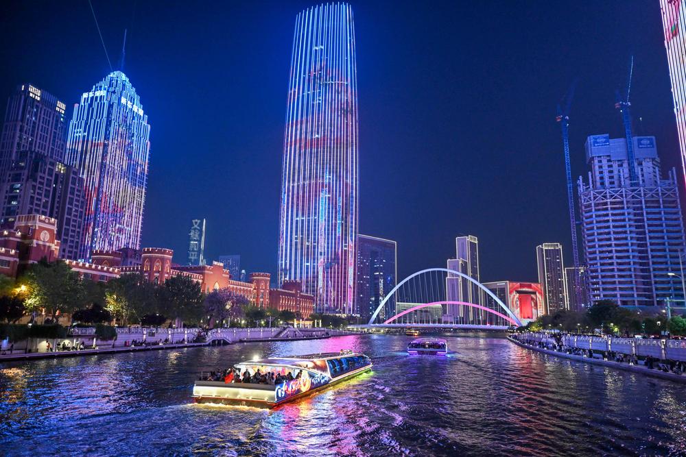 최근 수년간 톈진은 '하이허(海河)의 밤' 도시 문화관광 브랜드를 통해 관련 시나리오와 업종을 확대하며 야간 문화관광에 활력을 불어넣고 있다. 톈진은 독특한 매력의 야경으로 인기 관광 명소가 됐다. 2026.4.26