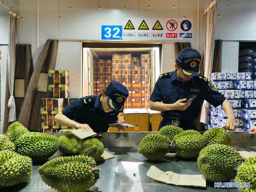 웨이궈전(魏國振) 광시 난샹(南向)크로스보더 운수회사 사장은 두리안 출하 시즌을 맞아 매일 20여 개 컨테이너 분량의 태국 두리안이 우의관 통상구를 거쳐 들어온다면서 화물차는 최소 3시간이면 모든 수속을 마치고 광둥(廣東), 저장(浙江), 장쑤(江蘇) 등지로 출발한다고 말했다. 그러면서 올 1분기 크로스보더 화물 운송량이 지난해 같은 기간보다 46% 늘었다고 덧붙였다.