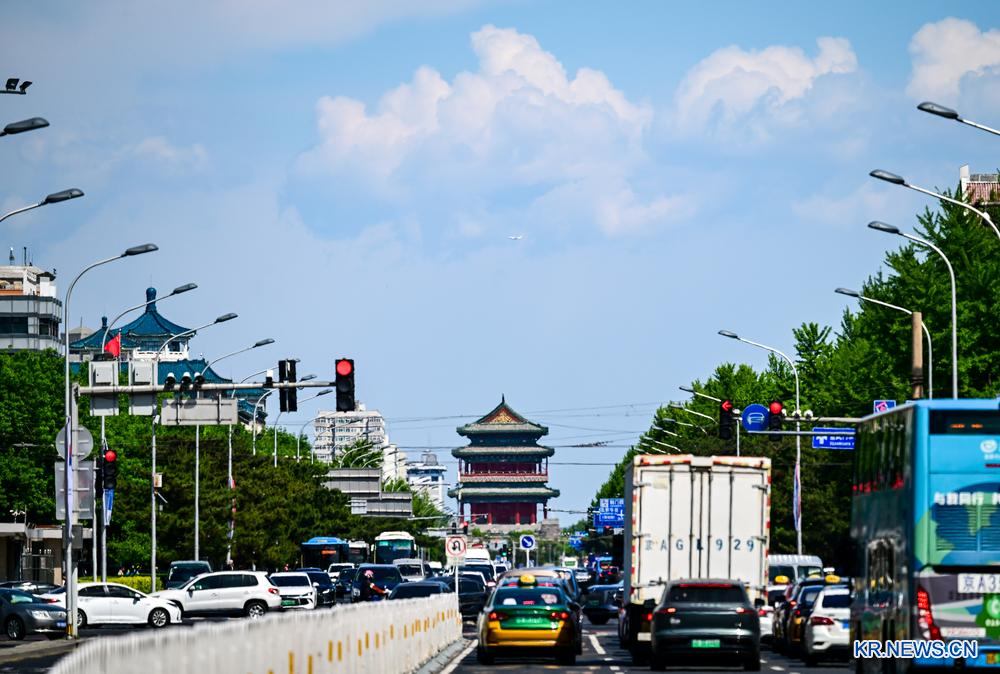 [신화망 베이징 4월29일] 28일 베이징에 맑은 날씨가 이어졌다. 푸른 하늘과 흰 구름 아래 선명하게 드러난 현대식 빌딩과 고대 건축물들이 조화를 이뤄 아름다운 풍경을 연출했다.