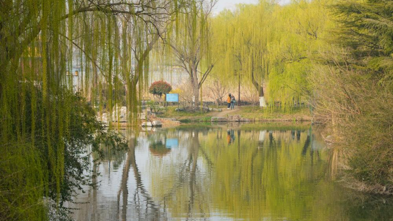베이징 베이하이공원, 상춘객 발걸음 줄이어