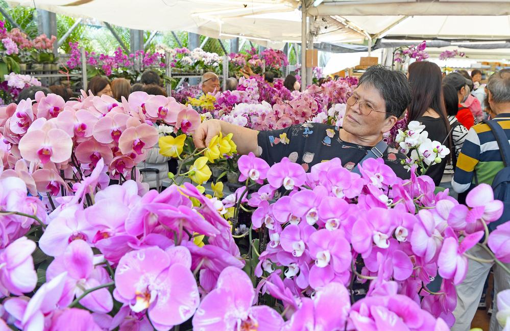 호접란 살펴보는 관광객들