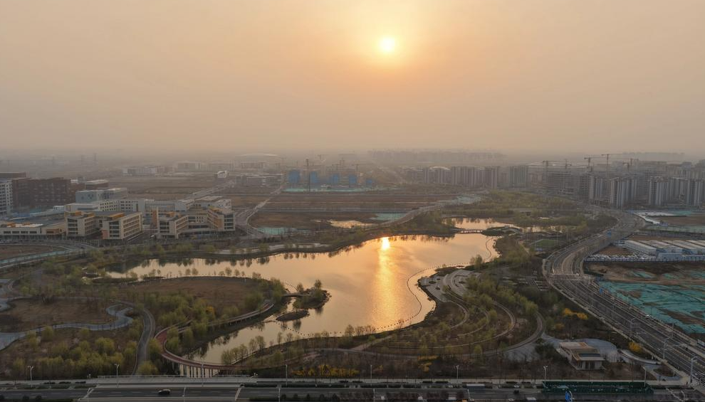 떠오르는 태양에 금빛으로 물든 中 슝안신구