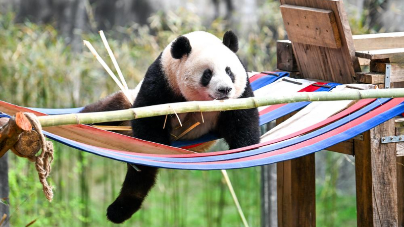 中 충칭, 따뜻한 날씨에 밖으로 나온 자이언트판다