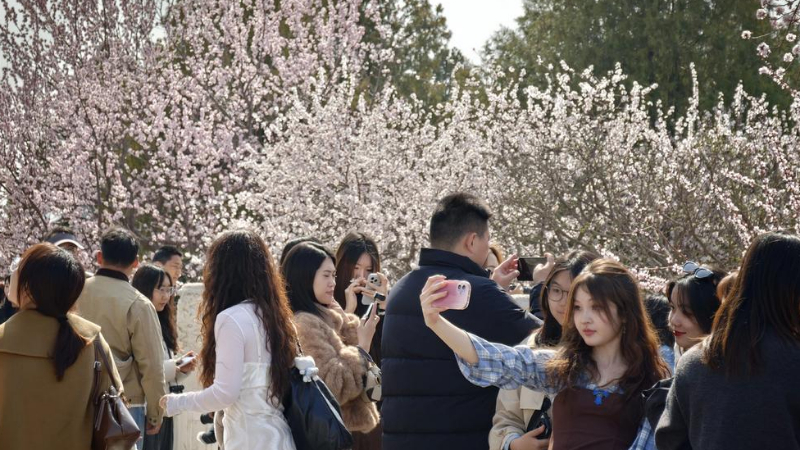 베이징 베이하이공원, 상춘객 발걸음 줄이어