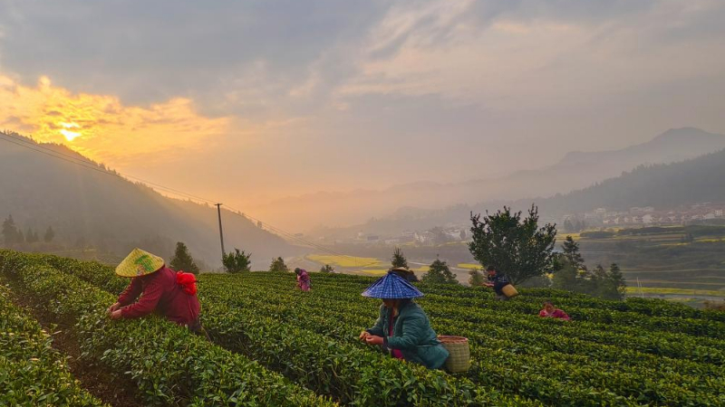 [영상] 초록 물결 일렁이는 차밭...中 후베이 바둥, 명전차 수확 한창
