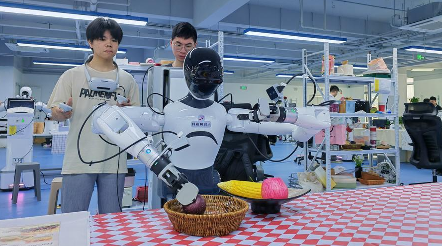 中 하얼빈공업대학 우주관서 관람에게 설명하는 로봇