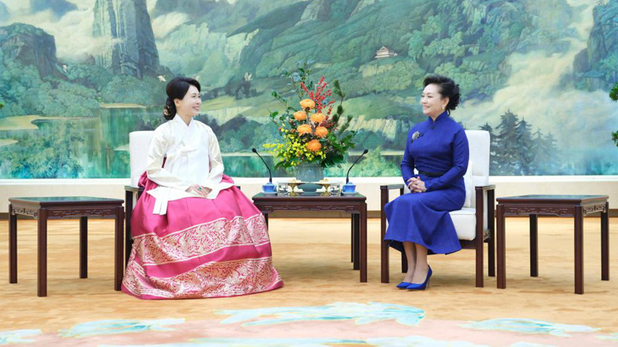펑리위안 여사, 韓 김혜경 여사와 차담