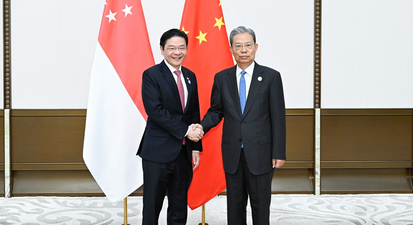 中 자오러지, 싱가포르 총리 및 스리랑카 의장 회견