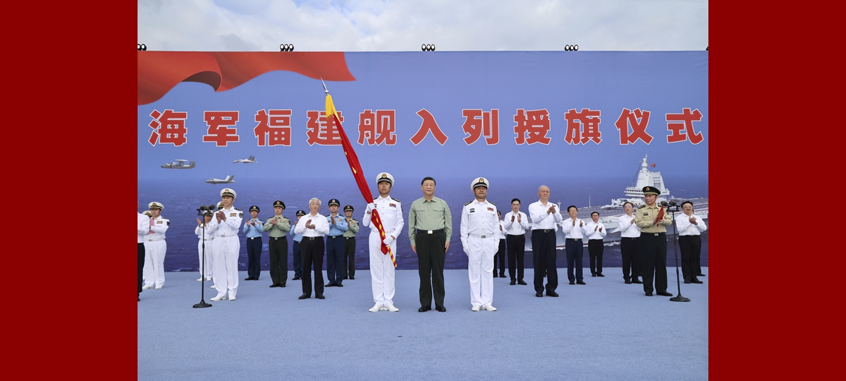 시진핑 주석, 中 첫 전자기 사출형 항공모함 ‘푸젠함’ 취역식 및 군기 수여식 참석