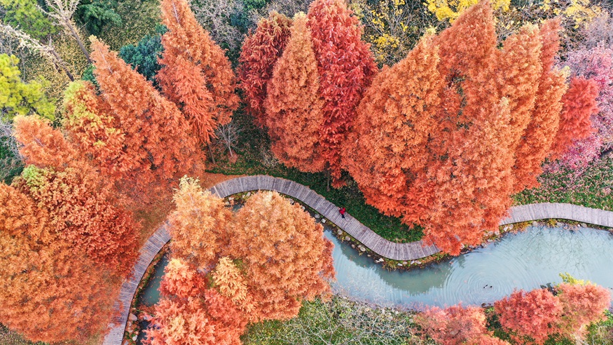 中 후난 창사, 붉게 물든 메타세쿼이아 나무
