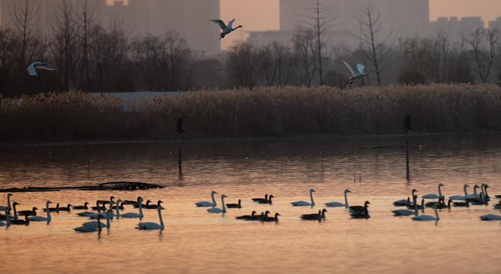 철새들의 '월동 천국', 中 안후이 밍후공원