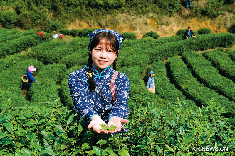 [신화망 장시 10월17일] 늦여름에서 초가을까지의 새벽은 중국의 거우구나오차(狗牯腦茶) 찻잎을 수확하기에 딱 알맞다. 찻잎 위에 맺힌 이슬이 증발하고 햇살도 뜨겁지 않기 때문이다.