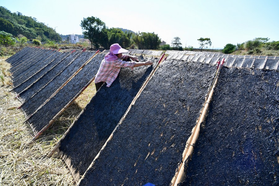 지난 21일 푸젠(福建)성 샤푸(霞浦)현의 한 어민이 새로 수확한 김을 말리고 있는 모습. (사진/신화통신)