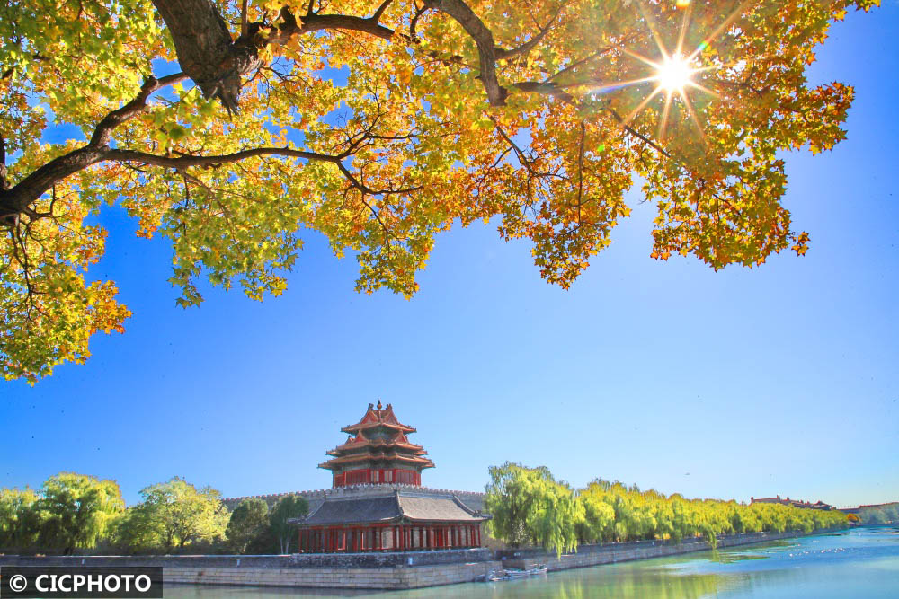 [신화망 베이징 10월25일]황금빛 가을을 뽐내는 10월, 베이징 고궁(故宮)의 붉은 성벽, 황금빛 기와, 알록달록한 나뭇잎과 따사로운 햇살이 어우러져 한 폭의 그림 같은 모습을 연출했다.