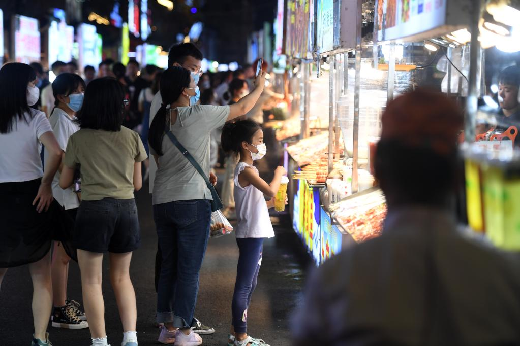 광시(廣西)좡족자치구 난닝(南寧)시의 한 미식 거리에서 시민들이 음식을 구매하고 있다. (사진/신화통신)