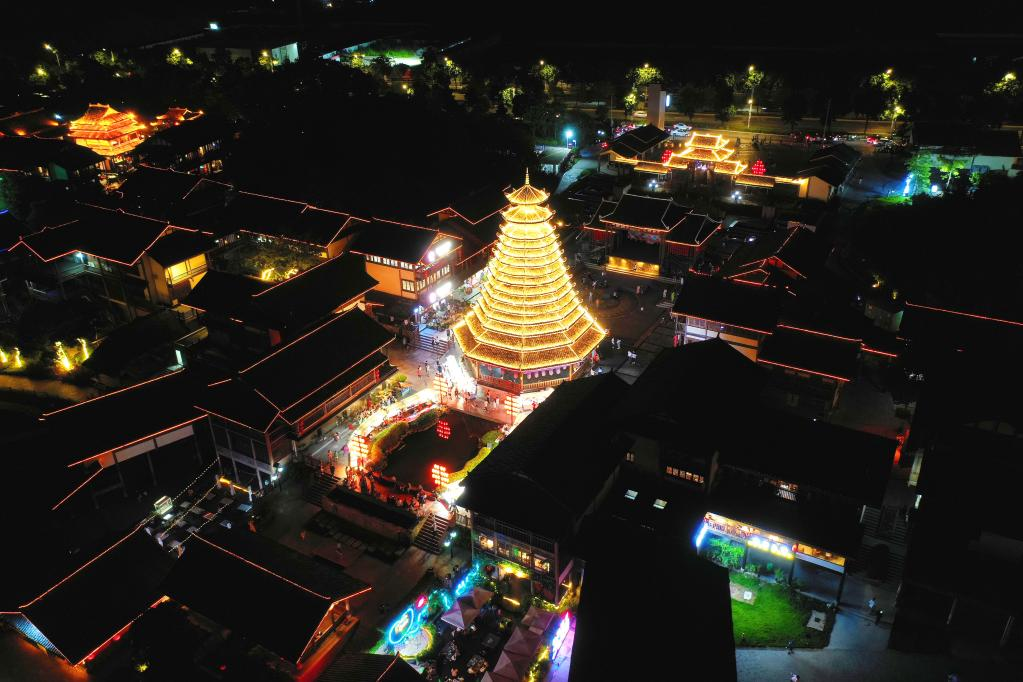 광시 난닝 샹쓰(相思)마을의 야경을 드론으로 내려다 봤다. (사진/신화통신)