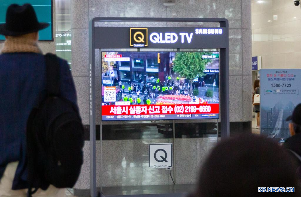 한국 소방당국이 29일 저녁 서울시 용산구 이태원동 근처에서 압사사고가 발생해 149명이 사망, 76명이 다쳤다고 30일 밝혔다. [제공:신화통신/뉴시스]