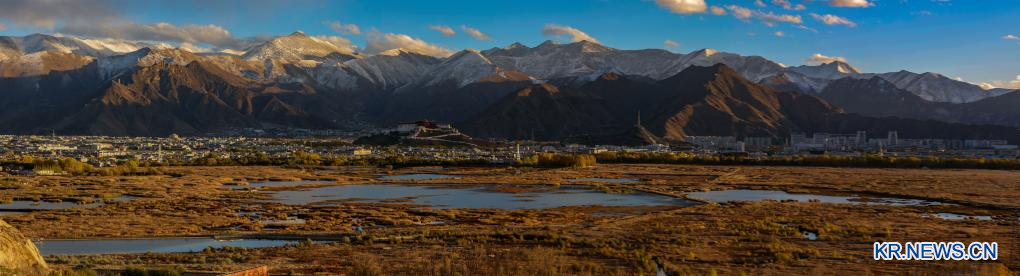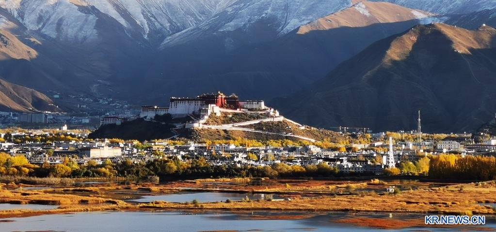 시짱(西藏)자치구 라싸(拉薩)에 위치한 세계문화유산 포탈라궁이 가을빛으로 물든 고원과 어우러져 절경을 이루고 있다.pagebreak