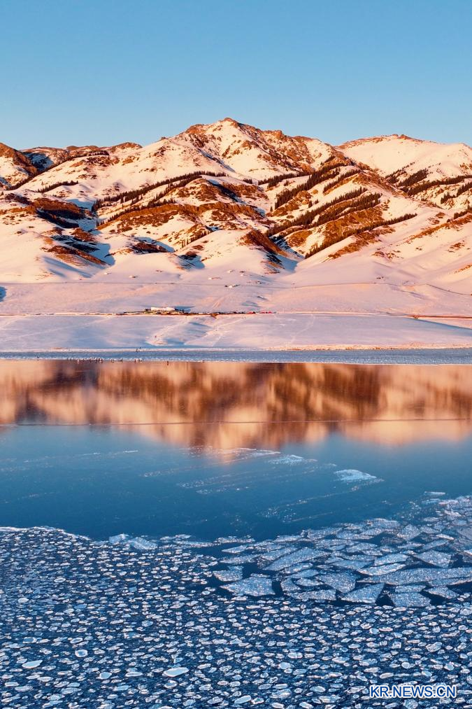 신장(新疆)위구르자치구 보얼타라(博爾塔拉)멍구(蒙古)자치주에 있는 싸이리무후는 신장(新疆)에서 최고 해발과 최대 면적을 자랑하는 고산 호수다. 2025.1.13