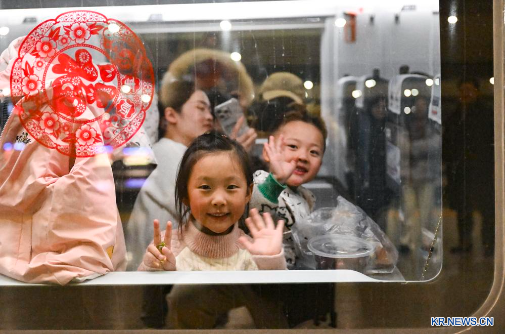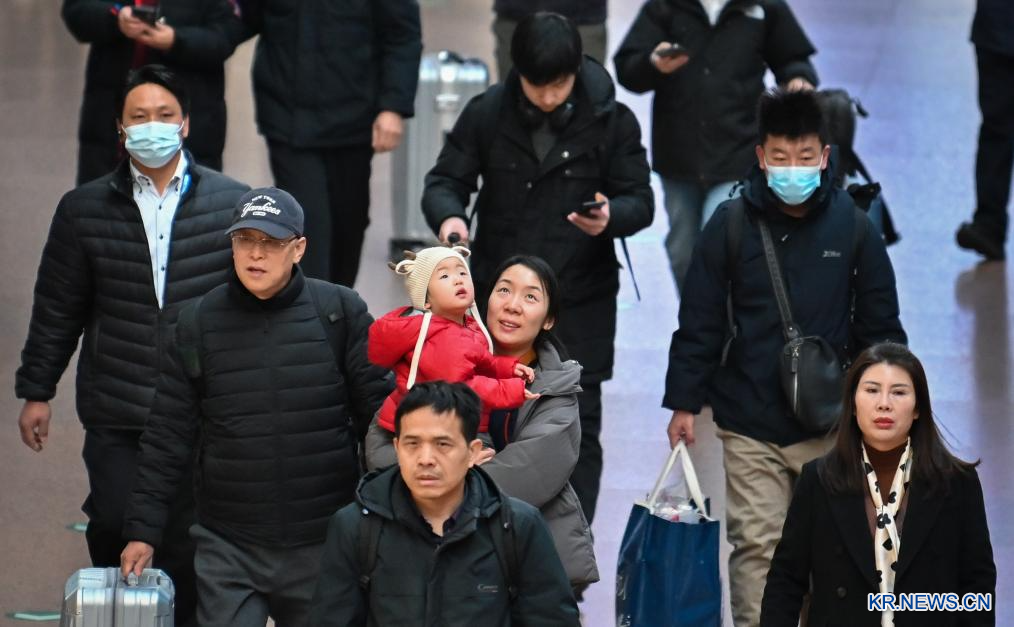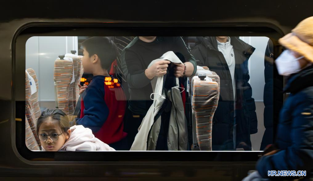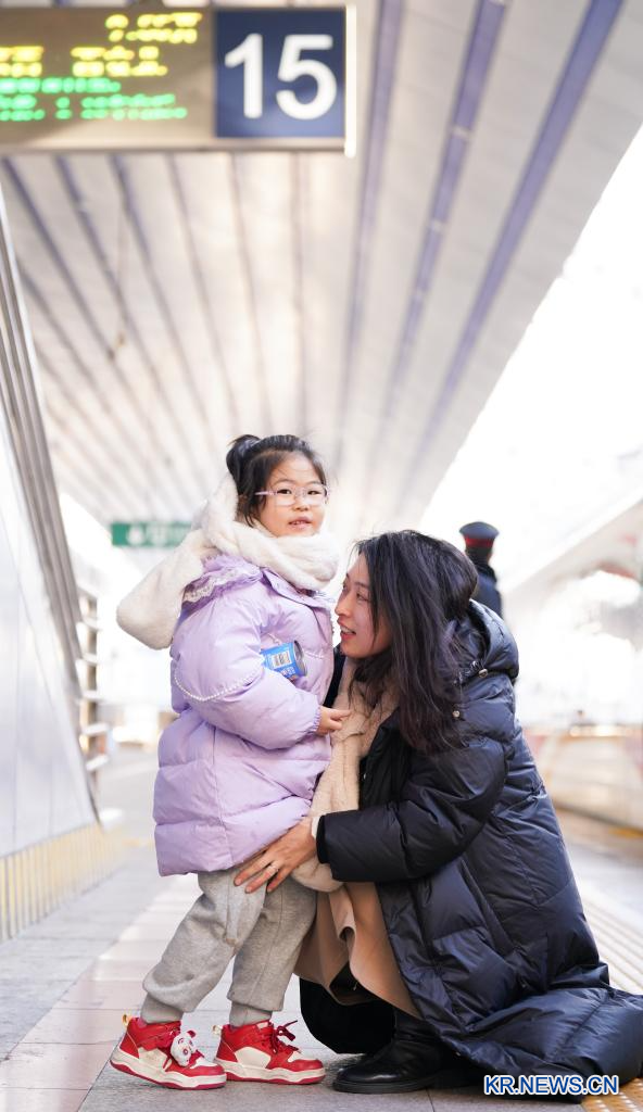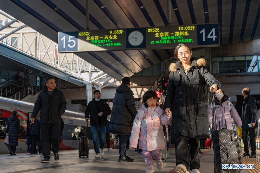 이날 여객들로 붐비는 베이징 서역 플랫폼. 2025.1.14
