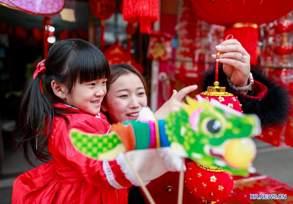 [신화망 베이징 1월15일] 춘절(春節·음력설)이 다가오자 거리 곳곳에 색색의 등불이 걸렸다. 사람들은 시장을 거닐며 춘절맞이 용품을 구매하고 다양한 새해맞이 행사에 참여하고 있다.
