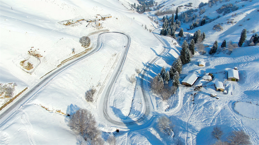 [신화망 베이징 1월17일] 눈이 내린 후의 나라티(那拉提) 초원은 자연이 빚어낸 설경처럼 은빛으로 뒤덮여 고요하고 성스럽다. 나무들이 순백의 옷을 입은 듯하고 나뭇가지마다 핀 영롱한 얼음꽃이 자연이 선물한 하얀 비단옷처럼 반짝이며 낭만적인 겨울 정취를 물씬 풍기고 있다.