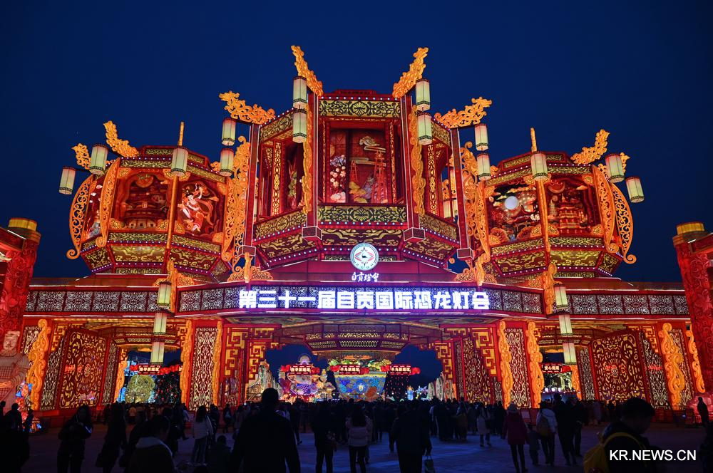[신화망 네이장 1월17일] '제31회 쯔궁(自貢)국제공룡등회'가 15일 저녁(현지시간) 쓰촨(四川)성 쯔궁시에서 점등식을 열고 시범 전시에 들어갔다. 이번 행사에는 12개 초대형 빛 조형물을 비롯해 다양한 크기의 빛 조형물이 설치돼 관광객들의 눈길을 사로잡았다.