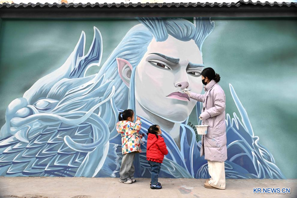최근 애니메이션 영화 ‘너자2’(哪吒之魔童閙海)를 바탕으로 그린 테마 벽화가 스자좡 거리에 선보여 시민들의 발걸음을 이끌고 있다.