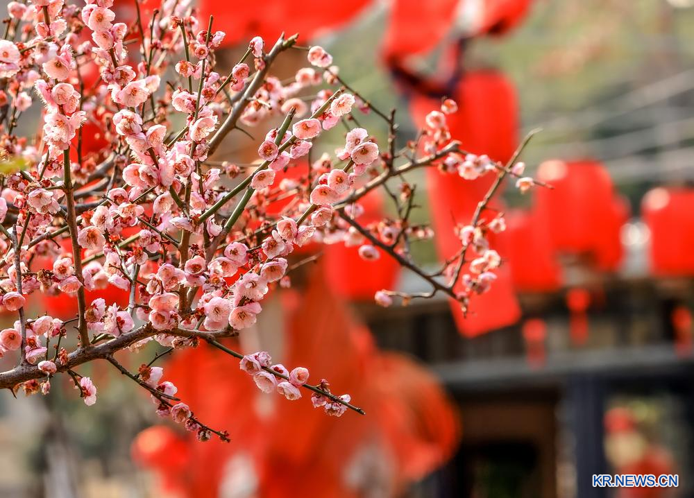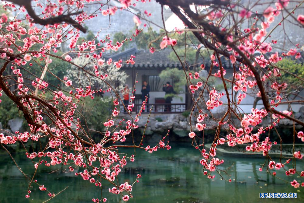 26일 후베이(湖北)성 우한(武漢)시 친타이(琴臺)공원에서 포착된 매화.