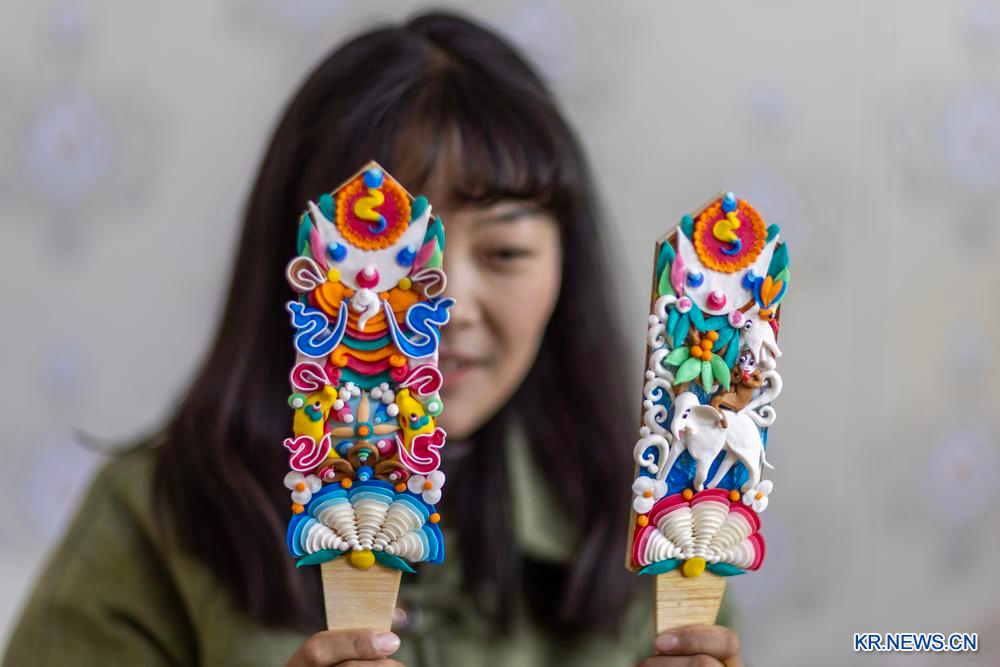 [신화망 라싸 2월27일] 25일 한 예술가가 시짱(西藏)자치구 라싸(拉薩)에서 직접 만든 쑤유(酥油·시짱식 버터)꽃을 판매하고 있다.