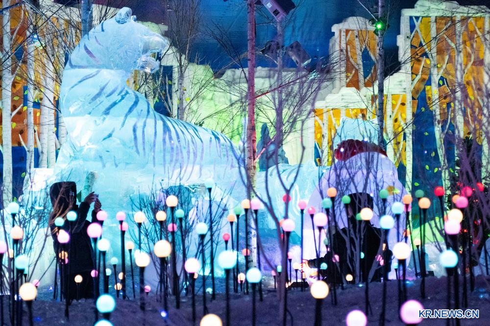 이날 하얼빈 빙설대세계 '몽환 빙설관'을 즐기는 관광객. 2025.2.27