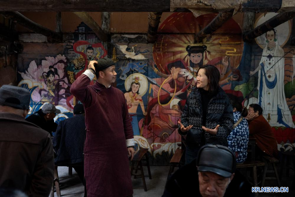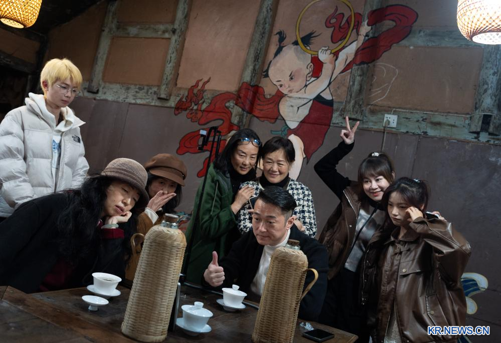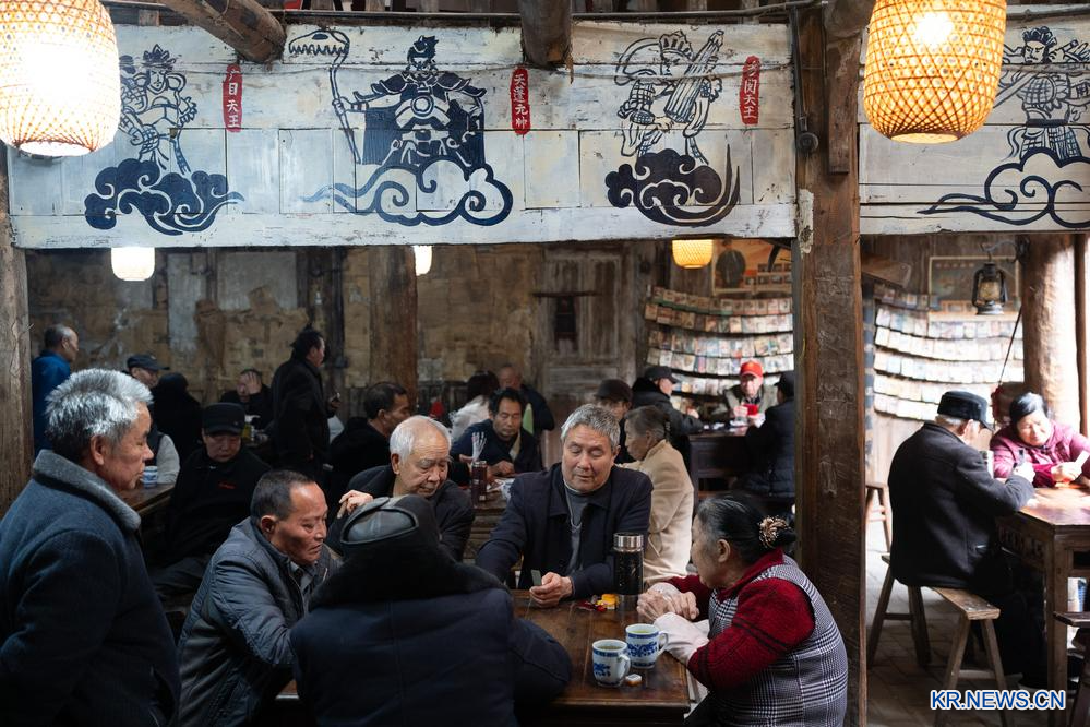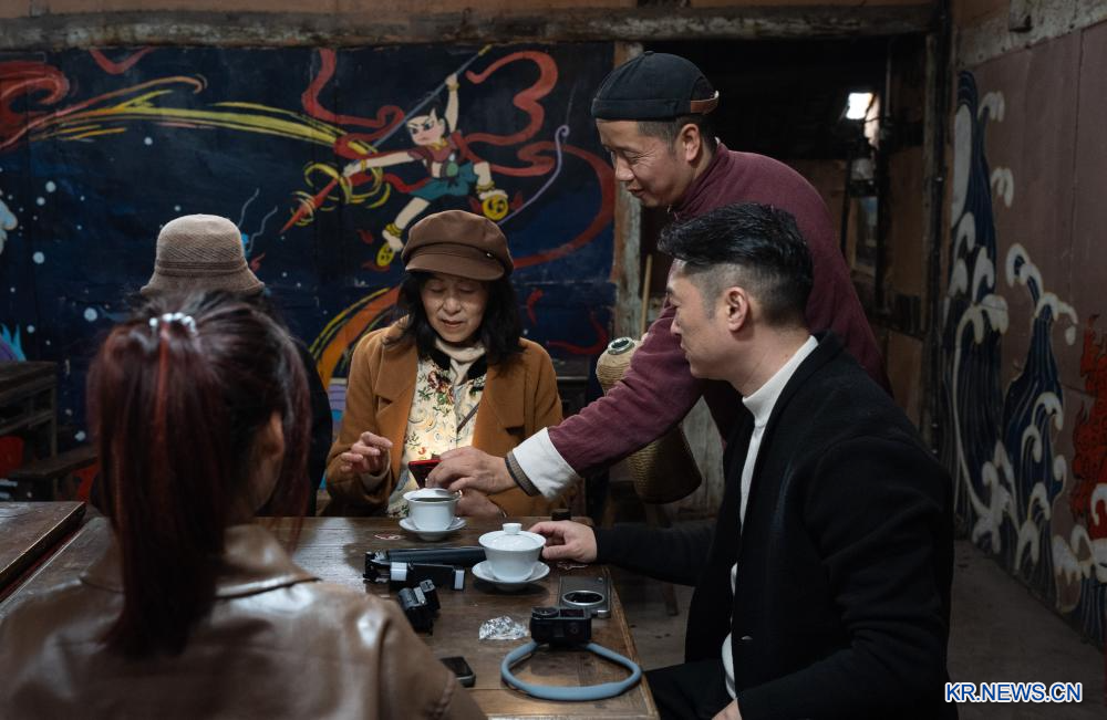 2일 쿤룽창 찻집에서 차를 마시며 휴식하는 손님. 2025.3.3