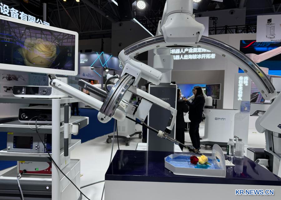 류위(劉雨) 상하이 웨이촹(微創)의료로봇(그룹) 상무부총재는 국내외 바이어에게 해당 로봇이 "밀리미터급 진동 필터링, 10배 입체 시각 증강, 5G 초원격 조종 등 기능을 갖췄다"고 소개했다. 그는 기층 병원에서도 정밀 수술이 가능해 환자들이 집 근처에서 안심하고 치료받을 수 있게 될 것이라고 덧붙였다.