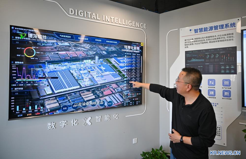 18일 더룽(德龍)소프트웨어테크(톈진) 직원이 산업 생산에 활용되는 관측용 소프트웨어를 선보이고 있다. 2025.4.21