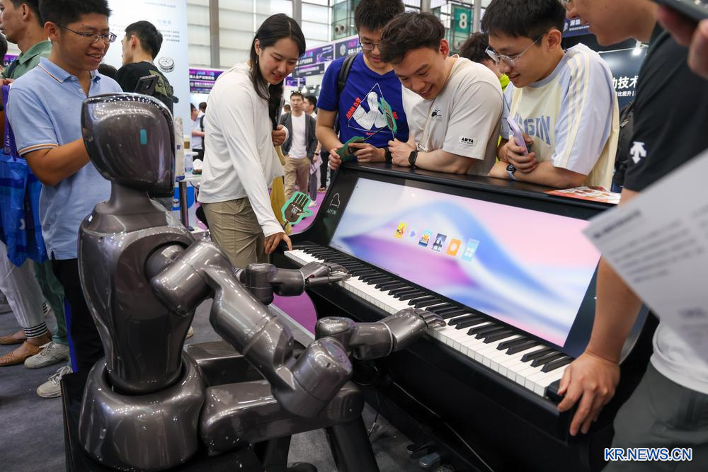 이날 휴머노이드 로봇의 피아노 연주를 감상하는 관람객. 2025.4.24