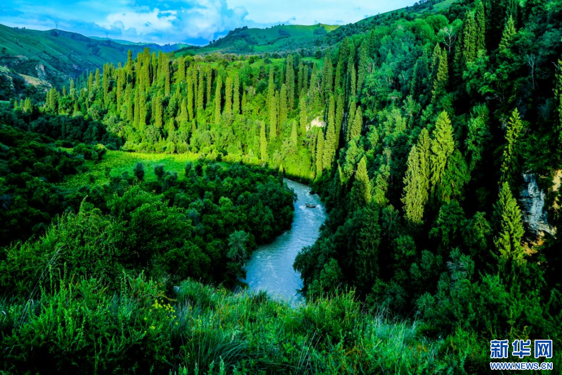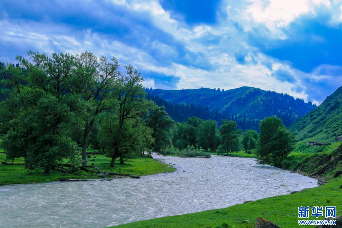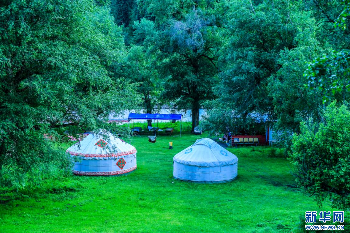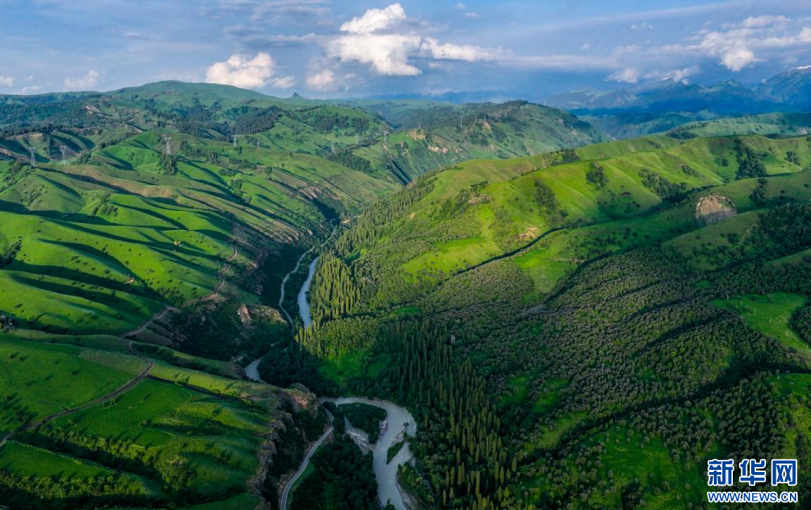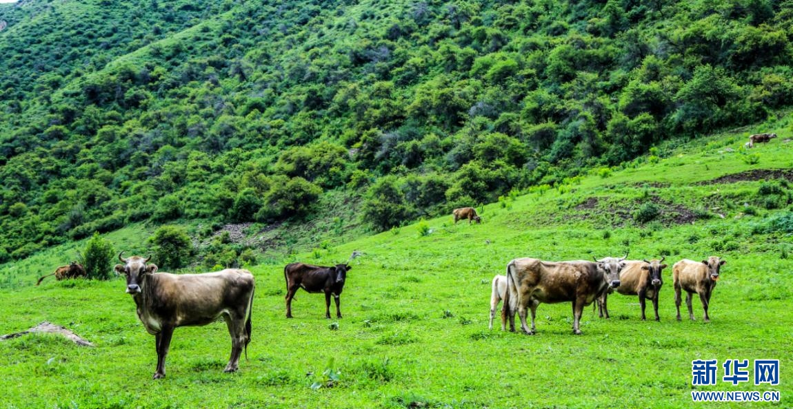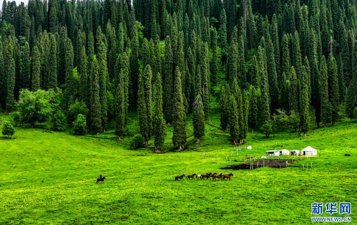[신화망 베이징 6월5일] 신장(新疆)위구르자치구 신위안(新源)현 싸하(萨哈) 관광지에 들어서면 워얼타타우샤(沃爾塔塔吾夏) 목장이 시적 정취가 물씬한 한 폭의 그림처럼 유려하게 펼쳐진다. 광활한 들판이 끝없이 펼쳐져 있고 벽옥으로 짠 융단을 방불케 하는 연녹색 풀들이 미풍에 물결처럼 살랑거린다. 소떼와 양떼가 고개를 숙이고 한가로이 풀을 뜯는 모습이 이 초원에 생동감을 더한다.