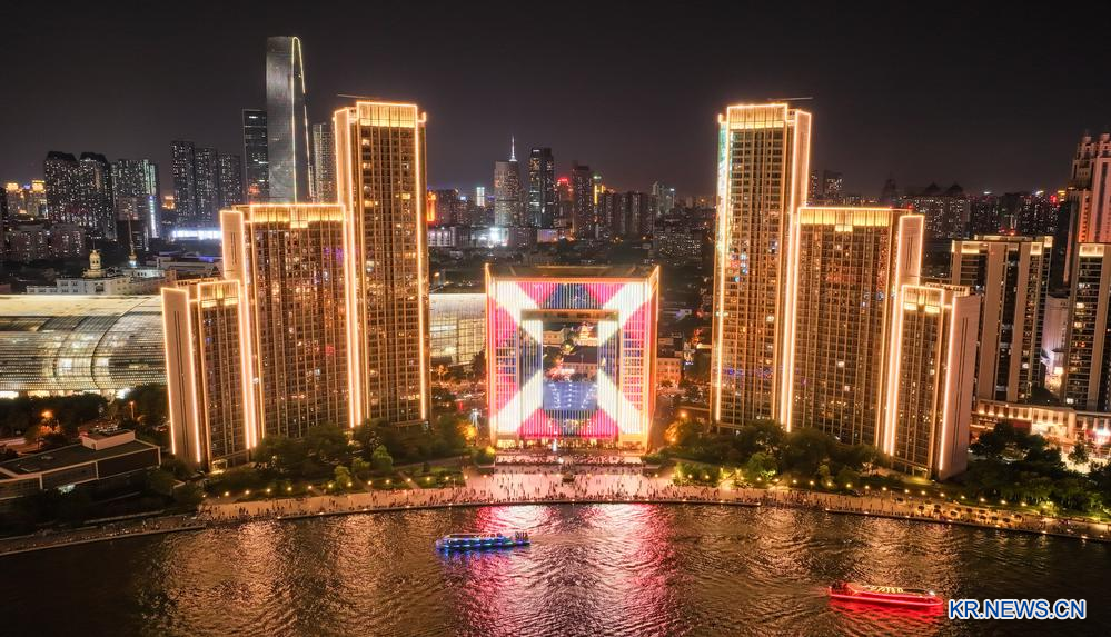 [신화망 톈진 6월24일] 지난 21일 톈진(天津) 하이허(海河) 야경을 드론 사진에 담았다.