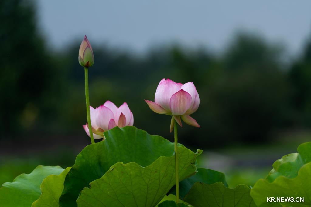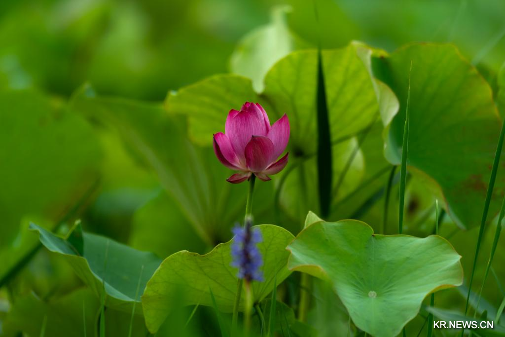 24일 상하이 천산식물원에서 포착한 연꽃.[촬영/신화사 기자 장젠쑹(張建松)]