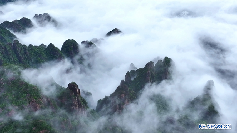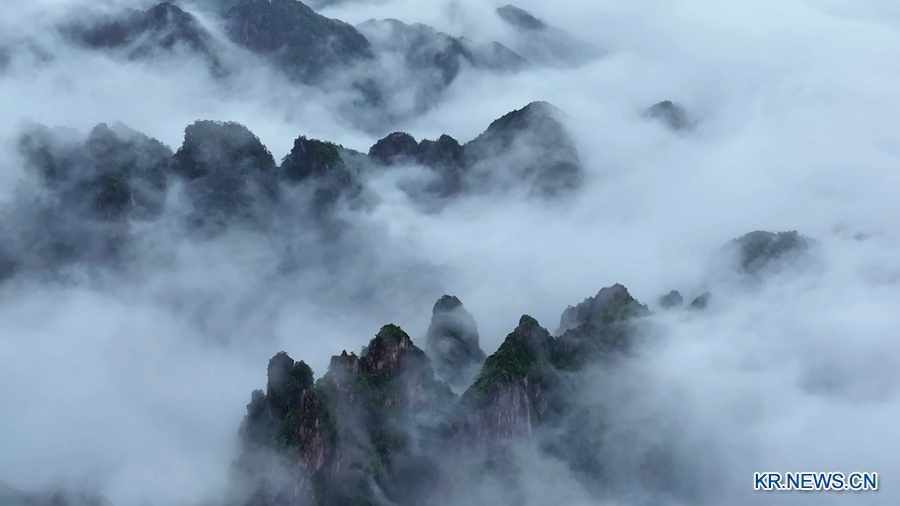 [신화망 베이징 6월26일] 최근 중국 황산(黄山)에 아름다운 운해쇼가 펼쳐졌다. 안개와 구름이 산과 어우러져 수묵화같은 풍경을 연출했다.