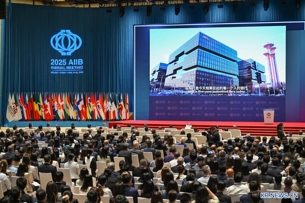 AIIB 제10회 이사회 연례회의 개막식이 이날 베이징에서 진행됐다. 약 100개 국가와 지역에서 온 3천500여 명의 귀빈이 이번 연례회의에 참석한다. 2025.6.26