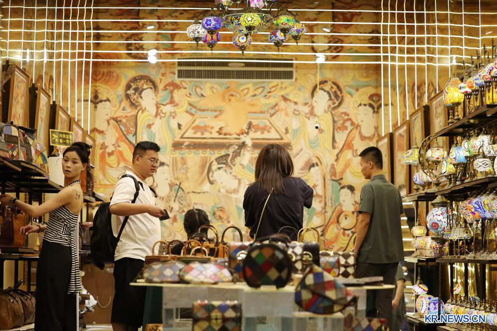 [신화망 둔황 6월28일] 올 들어 간쑤(甘肅)성 둔황(敦煌)시는 둔황 야시장 등 특색 거리 구역을 전면 업그레이드 및 개조하면서 둔황 벽화, 실크로드 문화 등의 요소를 담아냈다. 특히 소비 업종 조정·최적화, 몰입형 음식 체험 공간 구축, 특색 문화창의 상품 출시 등 조치를 통해 '야간 경제' 활성화에 힘쓰고 있다.