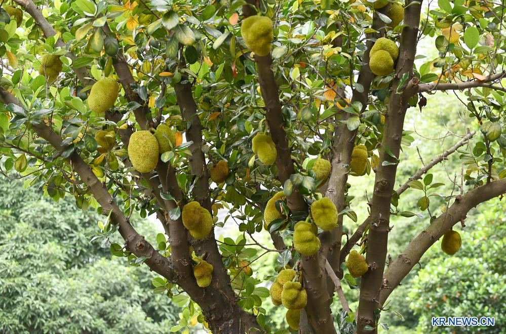 29일 광시(廣西)좡족자치구 난닝(南寧)시 진푸(金浦)로에서 촬영한 잭프루트 나무.