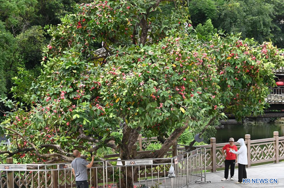 29일 난닝시 구청(古城)로에서 포착한 자바사과 나무. 2025.6.29