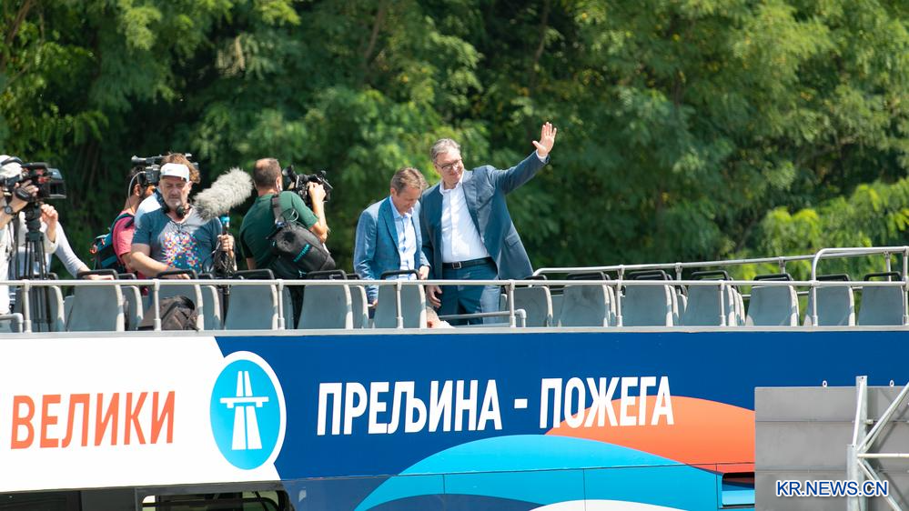 [신화망 루차니 7월7일] 중국 기업이 건설한 세르비아 E763 고속도로 프렐리나~포제가 구간 개통식이 5일 세르비아 남부 도시 루차니에서 열렸다.