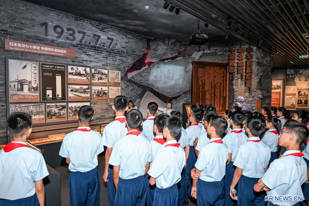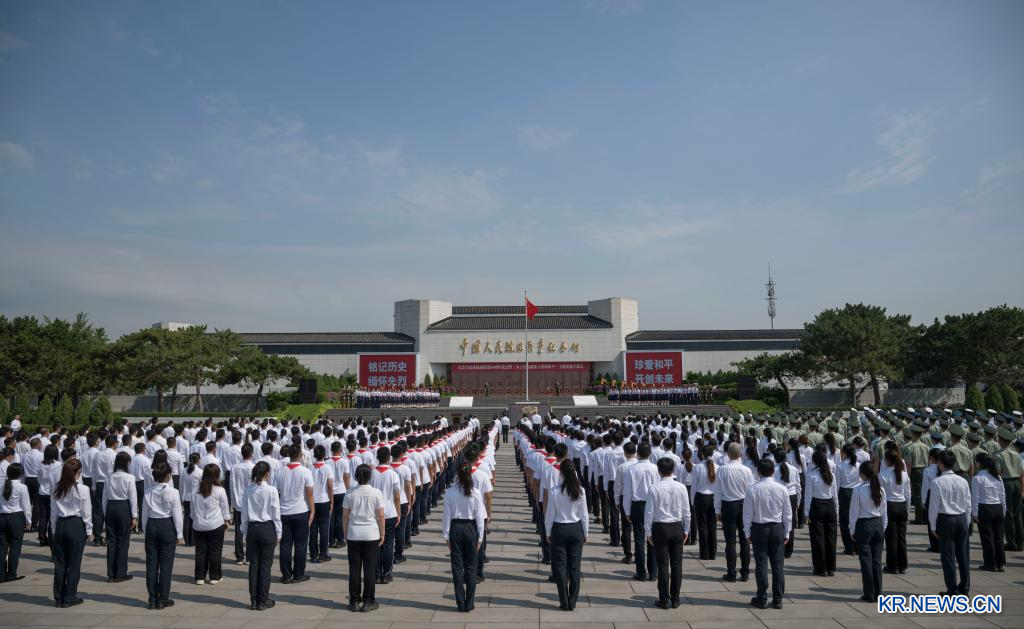 전민족 항일전쟁 발발 88주년 기념식 및 ‘민족 해방과 세계 평화를 위하여’ 주제 전시 개막식이 7일 오전 중국인민항일전쟁기념관에서 열렸다.[촬영/신화사 기자 차이양(才揚)]
