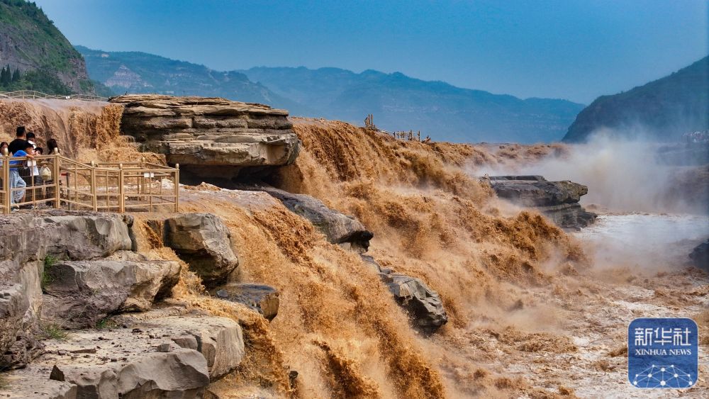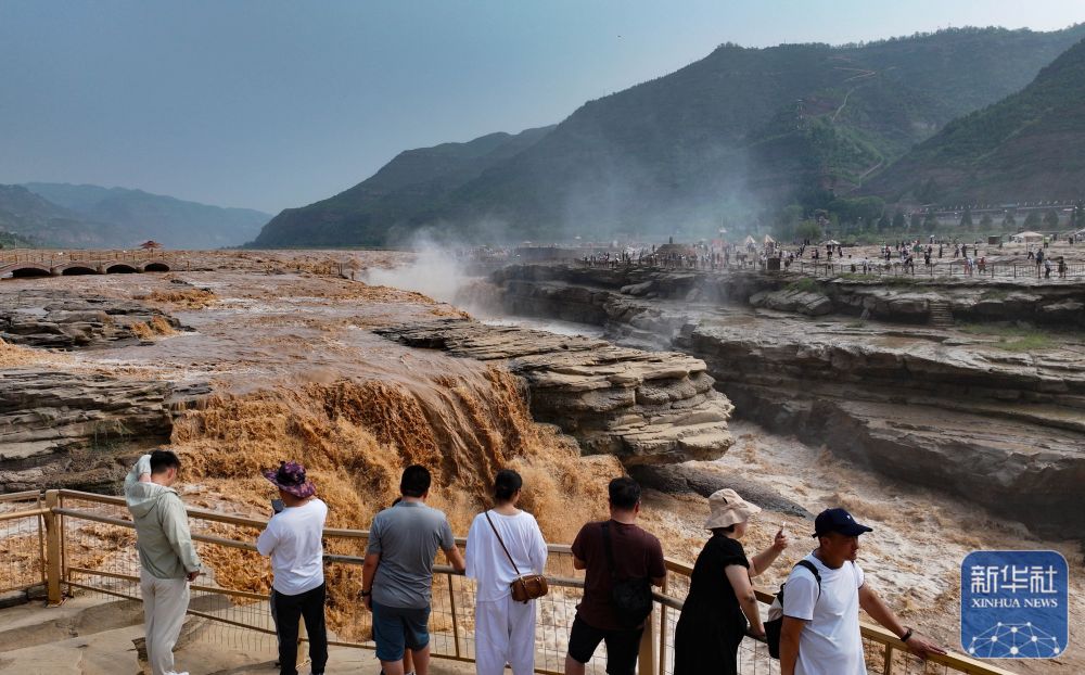 [신화망 베이징 7월13일] 최근 산시(陜西)성 이촨(宜川)현과 산시(山西)성 지(吉)현 경계 지역에 위치한 황허 후커우 폭포 관광지에 많은 관광객의 발걸음이 어어졌다.상류 지역의 강수량 증가 등 영향으로 최근 황허 후커우 폭포의 수량이 급격히 늘어나 장관을 이루었다.